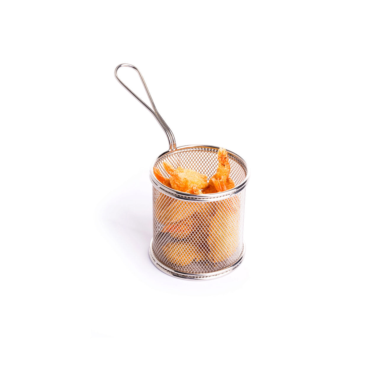Cos servire tip mini-fry din Otel inoxidabil. Se poate spala la masina de spalat vase. 90x(H)90 mm