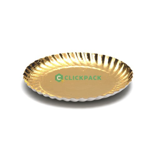 Farfurie pentru prajituri, din carton plastifiat, aurie. diametru 20cmCartonul este alimentar si rezistent la grasimi.Recomandat pentru fursecuri, prajituri, pateuri, saleuri.Distribuit de Clickpack